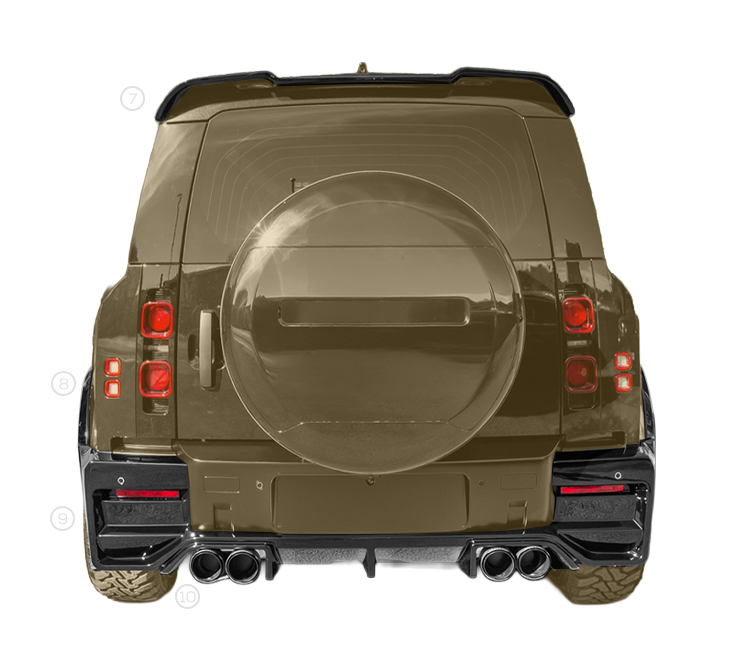 Complete your build with a refined rear profile. Choose from a curated selection of exhaust tip finishes; including gloss black, carbon fibre, and brushed steel – each one designed to complement your vehicle’s presence and sound.