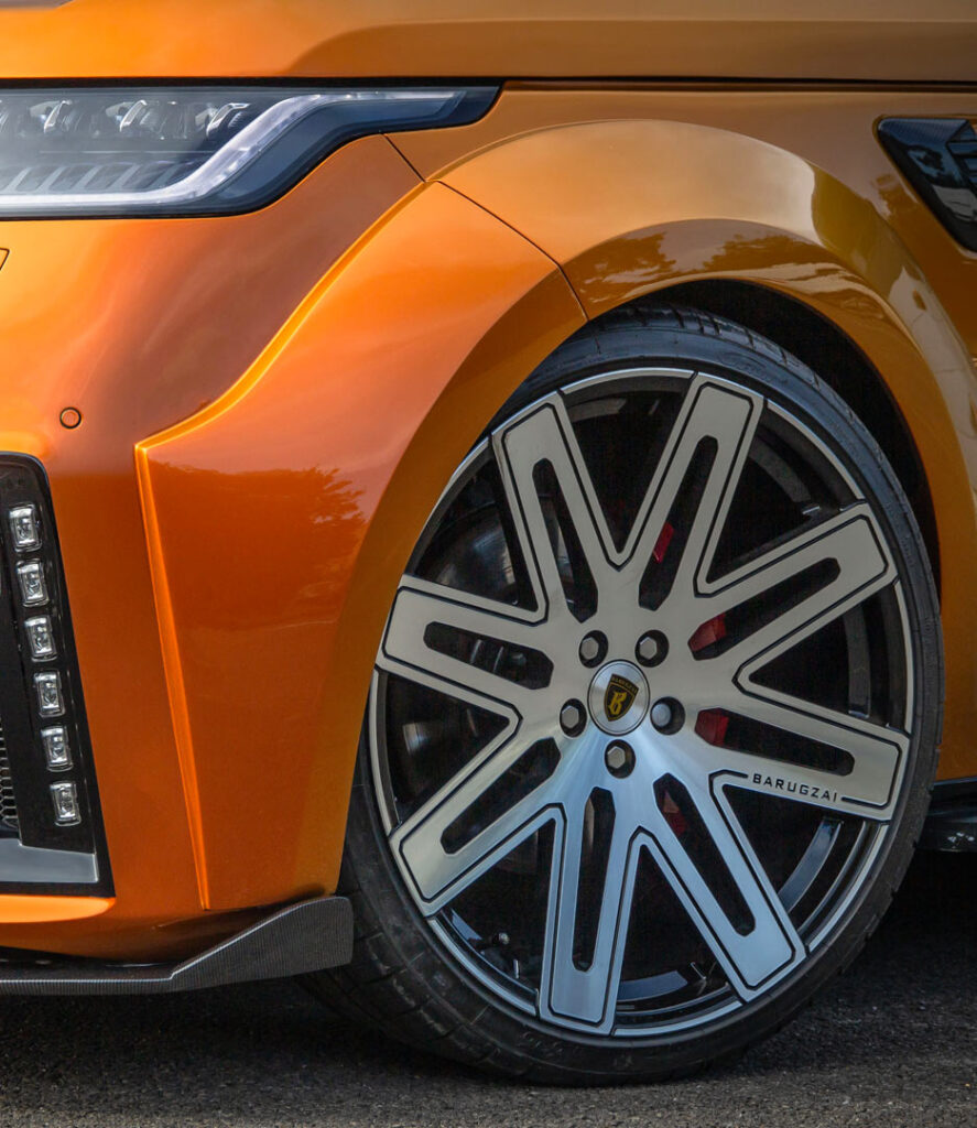 A powerful reimagining of the Range Rover Cabaro; the Cabaro Magma Edition fuses bold design with volcanic intensity. With Barugzai’s Cabaro II wide-arch conversion, the silhouette becomes even more aggressive and muscular. The sunburst magma-orange paintwork radiates heat and energy, while 24″ gloss-black EXEL alloys with polished faces deliver dynamic contrast and strength. Inside, richly appointed red Nappa leather with black trim brings a dramatic, handcrafted luxury. This isn’t just a Cabaro: it’s a blaze of purpose and power.