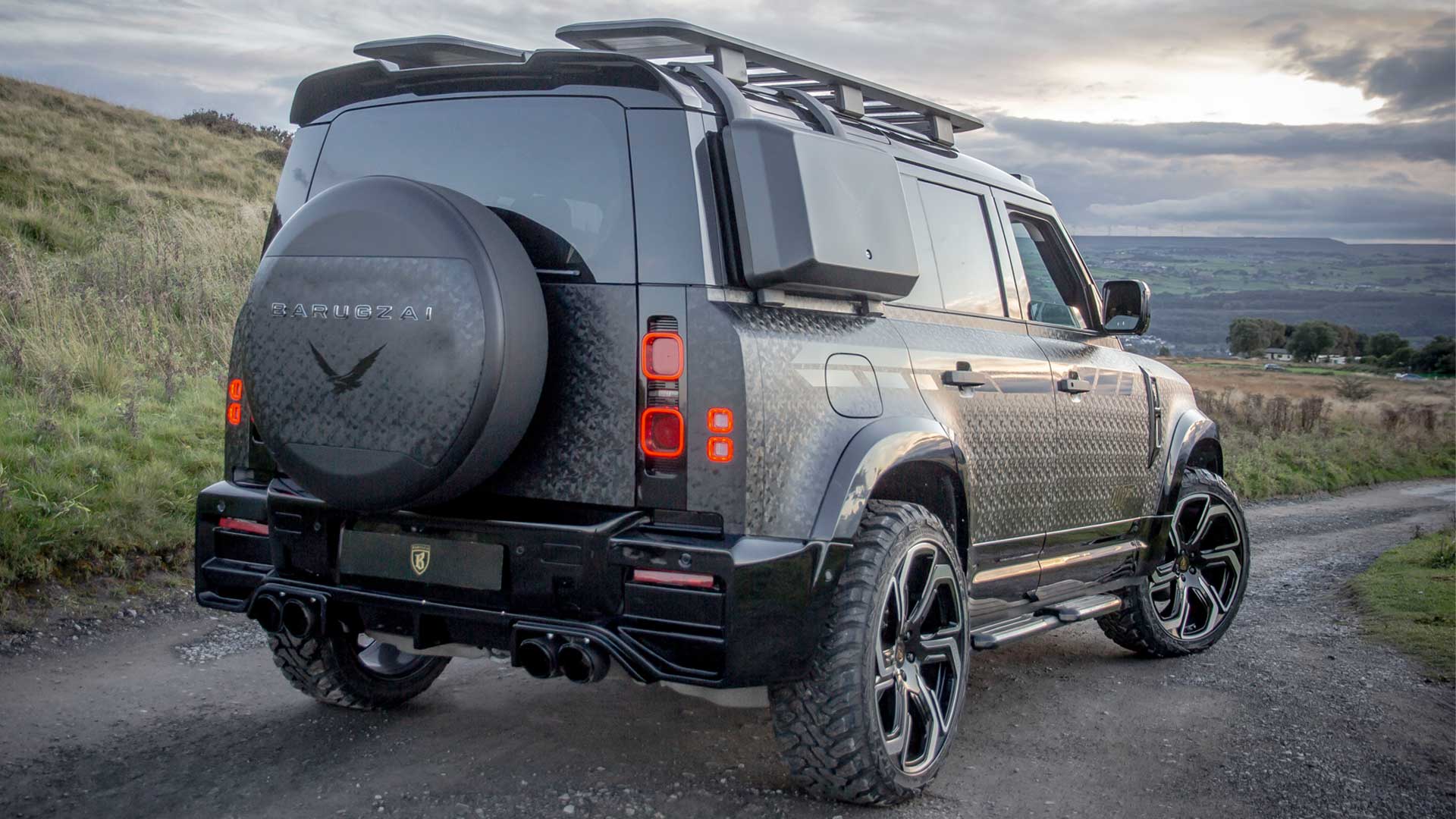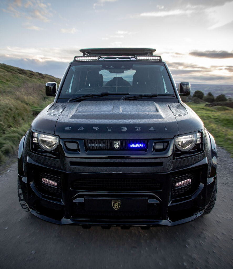 A commanding reinterpretation of the Defender 110. Wrapped in a crushed forged-carbon finish, the Falcon 007 Edition pairs covert styling with unmistakable presence. The Barugzai Falcon bodykit sharpens every line, while red and blue grille sirens add a signature flash of authority. Sitting on 22″ SABRE alloys in Gloss Black and Polished Face, this build blends power, precision, and personality. Not just a Defender: a statement in motion.